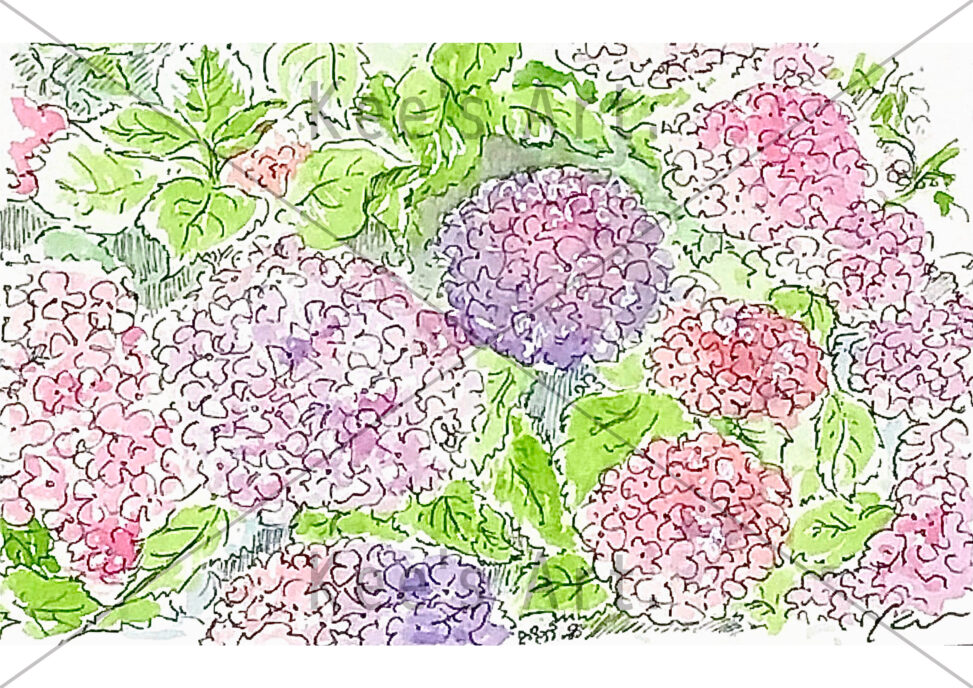描きながら日が暮れる気持ちになったアジサイのスケッチ。
