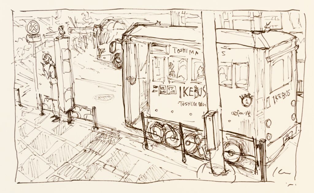 池袋のバスをスケッチしました。真っ赤な色が可愛い。だけど、塗りすぎました。でもそれも味って感じするよね。