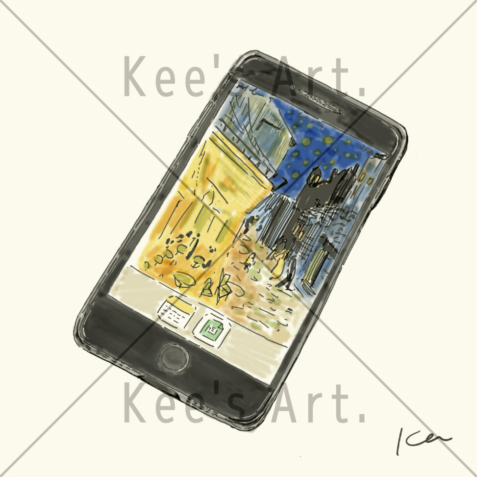 「夜のカフェテラス」はゴッホの絵で一番好きで、私が線画が好きな理由にも繋がっているというインスピレーション受けた。あとは黄色と青の色彩がすごく綺麗で推しポイント。