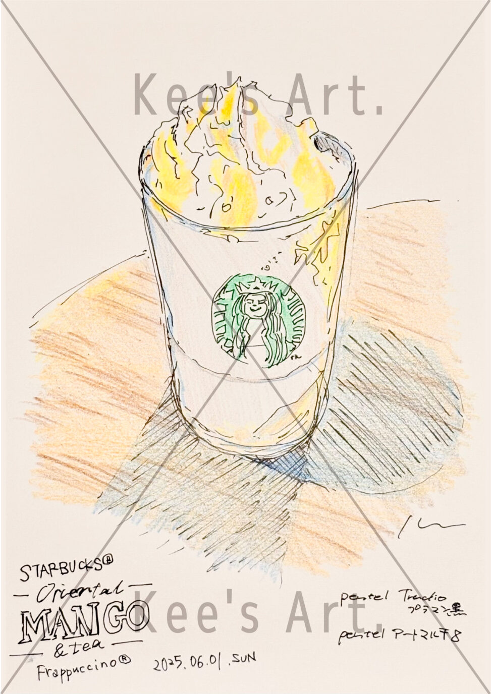 スタバの店内で実際に描いてみた。そういった意味で「カフェスケッチ」だね。色鉛筆だと気兼ねなく店内でスケッチできるのがうれしい。